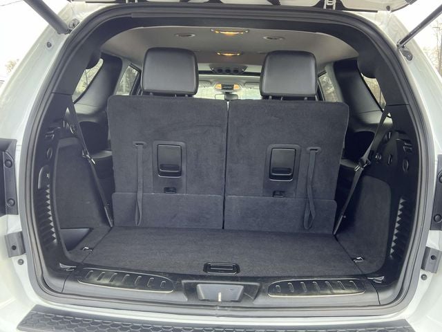 2020 Dodge Durango GT Plus AWD finished in White Knuckle Clear-Coat over Black leather-trimmed bucket seats. Equipped with the GT Plus Package (2BE) and Premium Group, this Durango features heated front and second-row seats, heated steering wheel, power liftgate, remote start, memory driver seat, suede/leather performance seats, power sunroof, Uconnect 4C NAV with 8.4 touchscreen, GPS navigation, Apple CarPlay, Android Auto, 9-speaker Alpine premium audio system with subwoofer and 506-watt amplifier, 4G LTE WiFi hotspot, SiriusXM Travel Link & Traffic, ParkView rear backup camera, ParkSense rear park assist, paddle shifters, sport mode, selectable steering modes, black roof rails with integrated crossbars, and 24.6-gallon fuel tank.